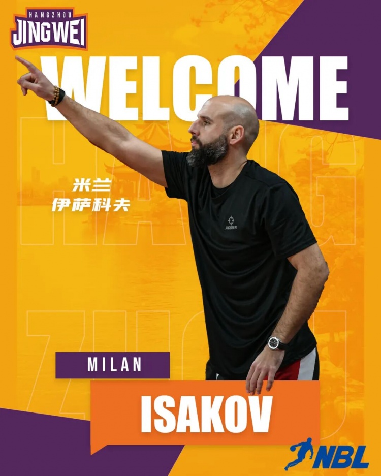 为进一步提升球队竞技水平、增强核心竞争力,经俱乐部管理层研究决定,塞尔维亚籍教练米兰・伊萨科夫(Milan Isakov) 正式担任杭州经纬队主教练,全面执掌球队技战术体系与赛场指挥工作。